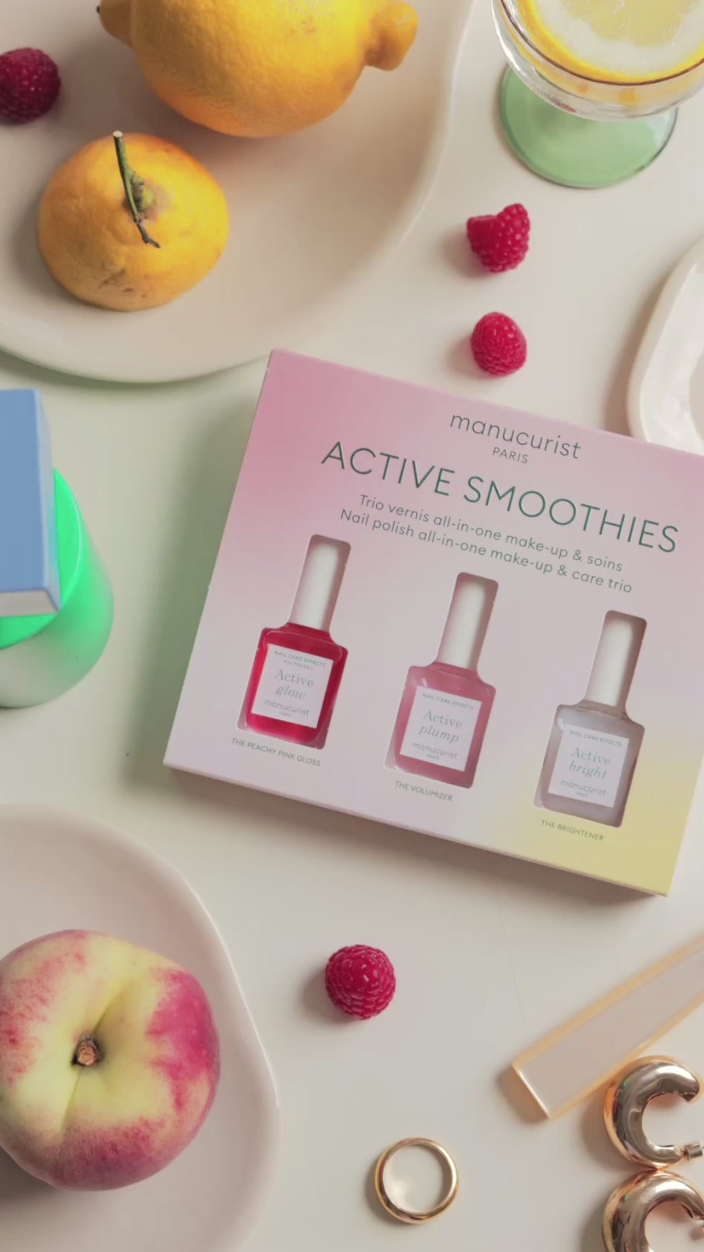 Pearl Nails: Active Bright + Active Plump Soap Nails: Active Glow™ Raspberry + Active Plump Glass Nails: Active Glow™ Raspberry + Active Bright Suits every desire: 1 to 2 coats for a customized result